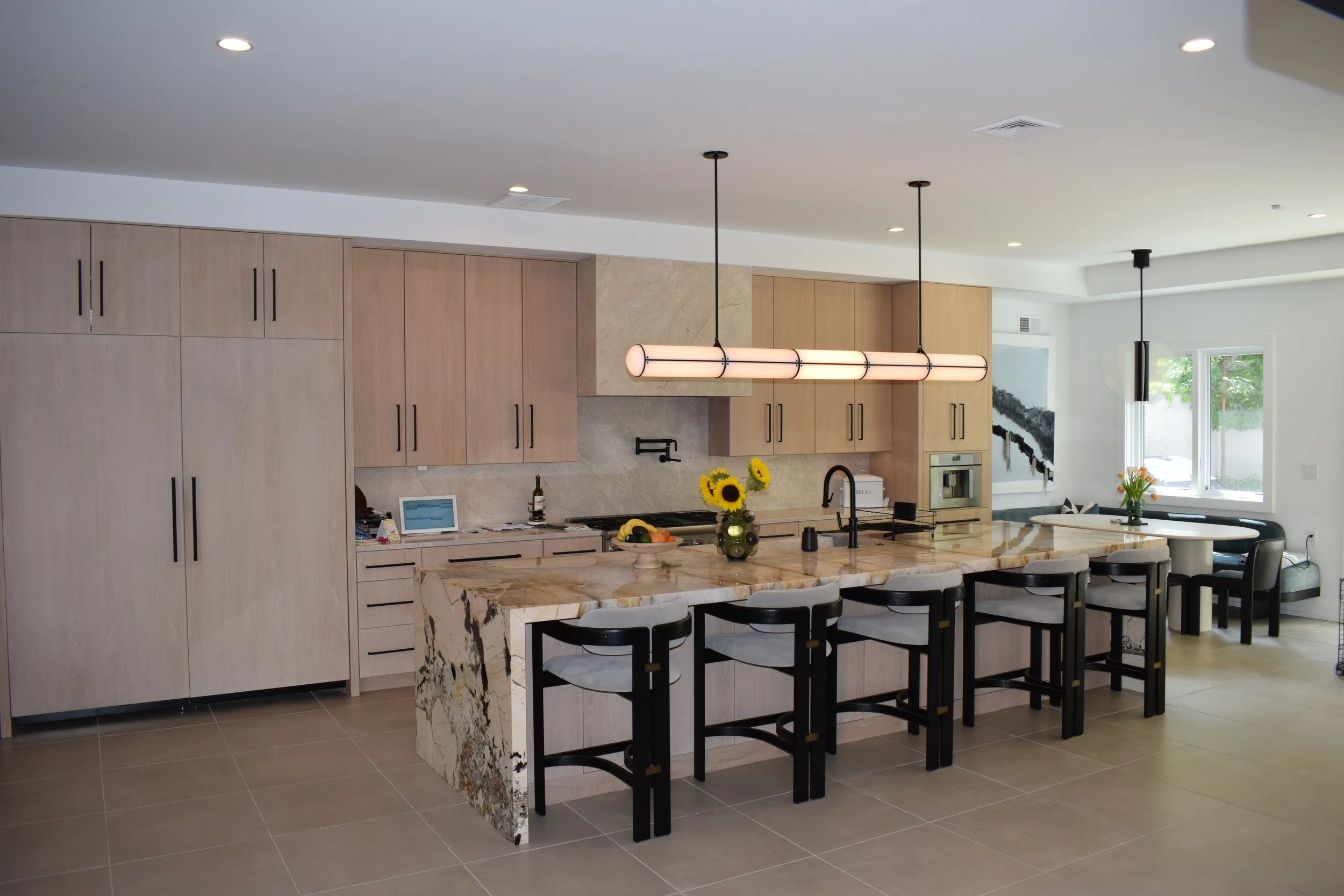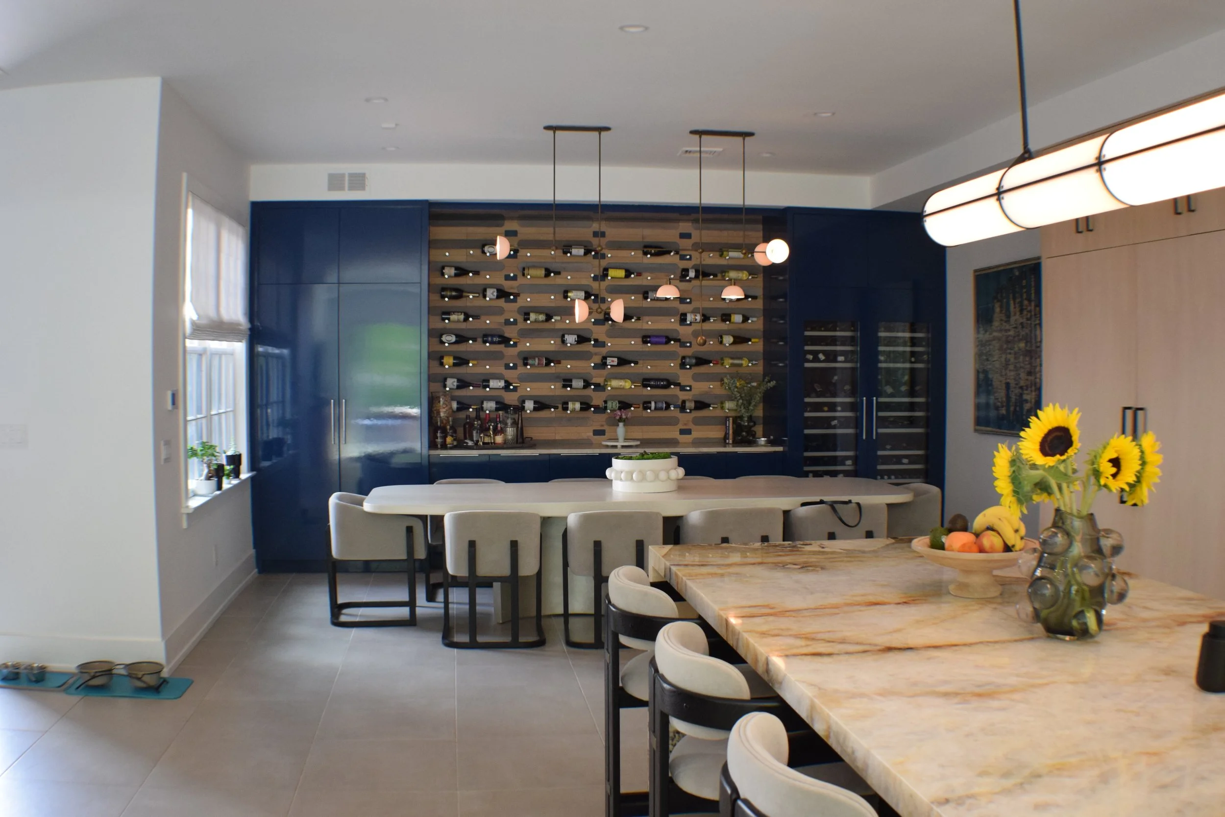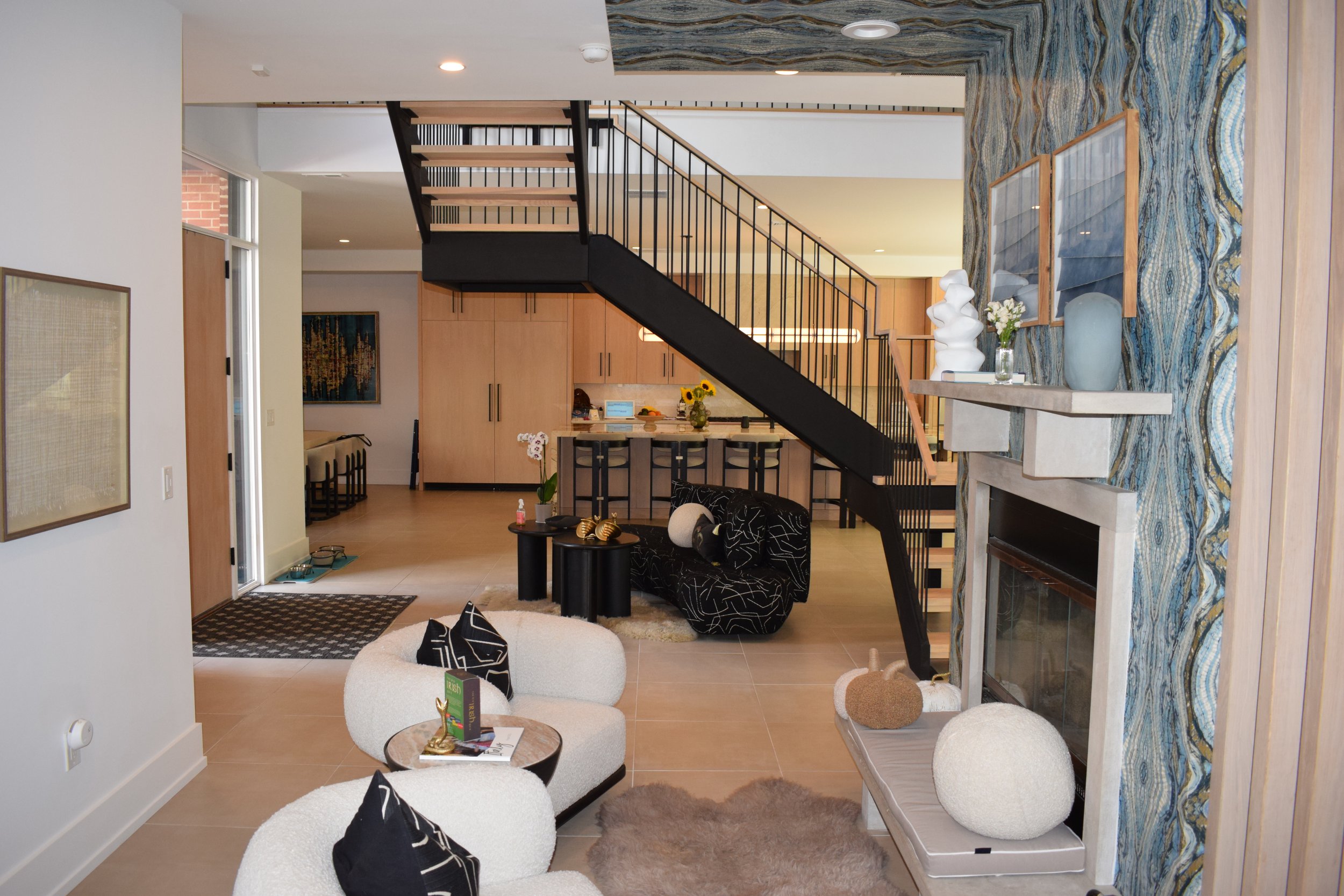 This high-end renovation expertly combines two adjacent condo units into a cohesive, luxurious living space centered around a dramatic, double-height staircase a subtle, 4 person elevator, that blends with the space and offers effortless access. The expansive kitchen and dining area serve as the heart of the home, designed with both functionality and style in mind. Large glass folding walls open from both the kitchen and living room, seamlessly merging indoor and outdoor living spaces to create an airy, inviting environment perfect for warm weather. The second floor includes a library nook for reading and quite reflection. The third floor features the primary bedroom suite, including a sauna, steam shower, as well as a rec space with pool table and a work out room. Every element of the design prioritizes comfort, flow, and modern sophistication.